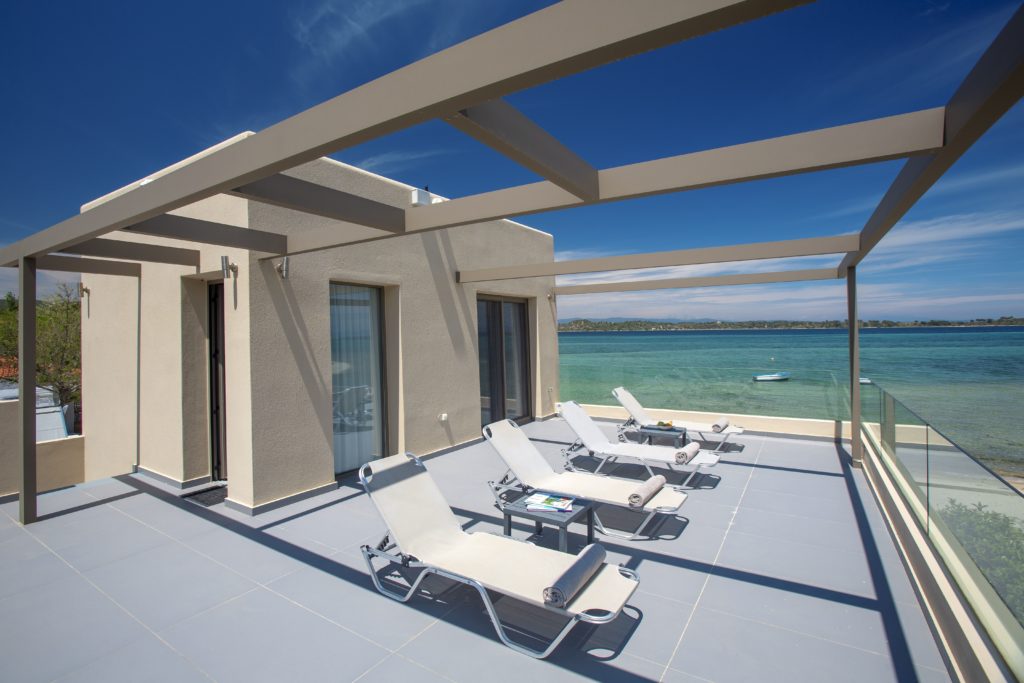 A holiday paradise right next to the sea is located on Diaporos Island of Halkidiki. What could be more beautiful than enjoying your coffee in the morning or your cocktail in the afternoon gazing at the turquoise waters and listening to the sound of the waves? A two-storey main building and a separate guest studio where they can accommodate up to 6 guests are waiting for you to enjoy comfortable and carefree holidays.