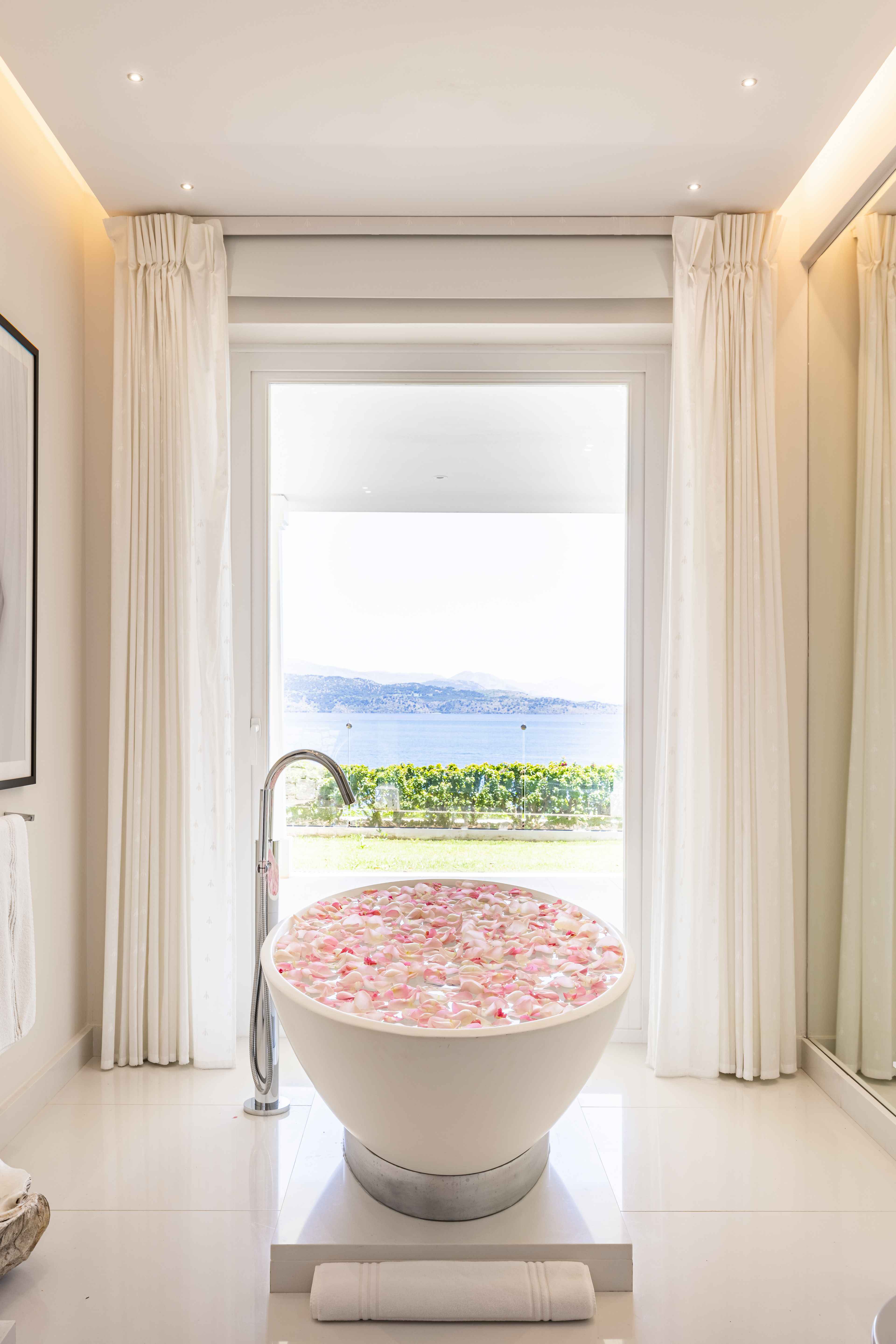 The guest house building has access to a semi-private terrace with stairs leading towards the pool and is located next to the main building. It has a living room, fully equipped kitchen and two double bedrooms with en-suite bathrooms. This villa is a paradise for every guest who wants to realize unforgettable holidays with state-of-the-art amenities on the island of Corfu.